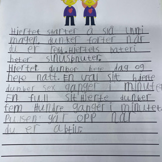 På 2. trinn ved Rye skole har de både tegnet og skrevet tankekart om hjertet som banker, og en elev hadde gjort seg følgende betraktning: "Hjertet er hele kraftverket i kroppen det!"